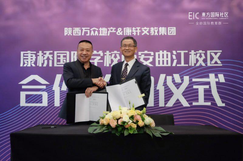 2018年12月5日,康桥国际学校西安曲江校区合作签约仪式在西安曲江举行。康桥国际学校携手万众地产将在这里共同打造一所高品质的国际学校。西安曲江新区教育卫生管理服务中心郭军主任,康轩文教集团李万吉董事长,康桥国际学校张启隆总校长,康桥国际学校西安曲江校区国际部钟鼎国校长、双语部邱馨仪校长,陕西万众地产李五亮董事长,陕西万众地产常务副总赵静及诸多领导嘉宾共同出席参加了签约仪式。此次签约,标志着康桥踏上西安教育的新征程,我们将承载国际化教育使命,开创西安国际化优质教育环境。